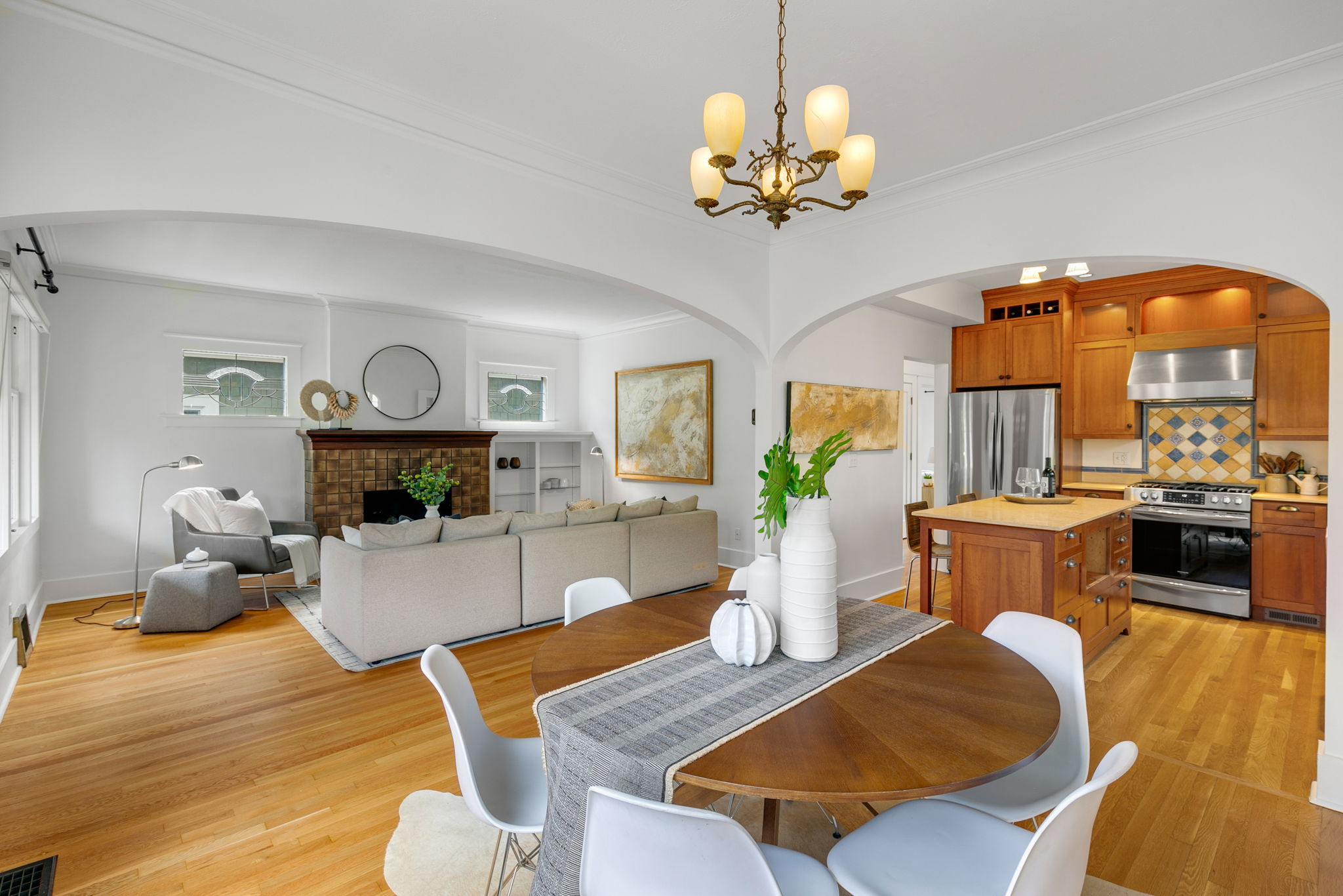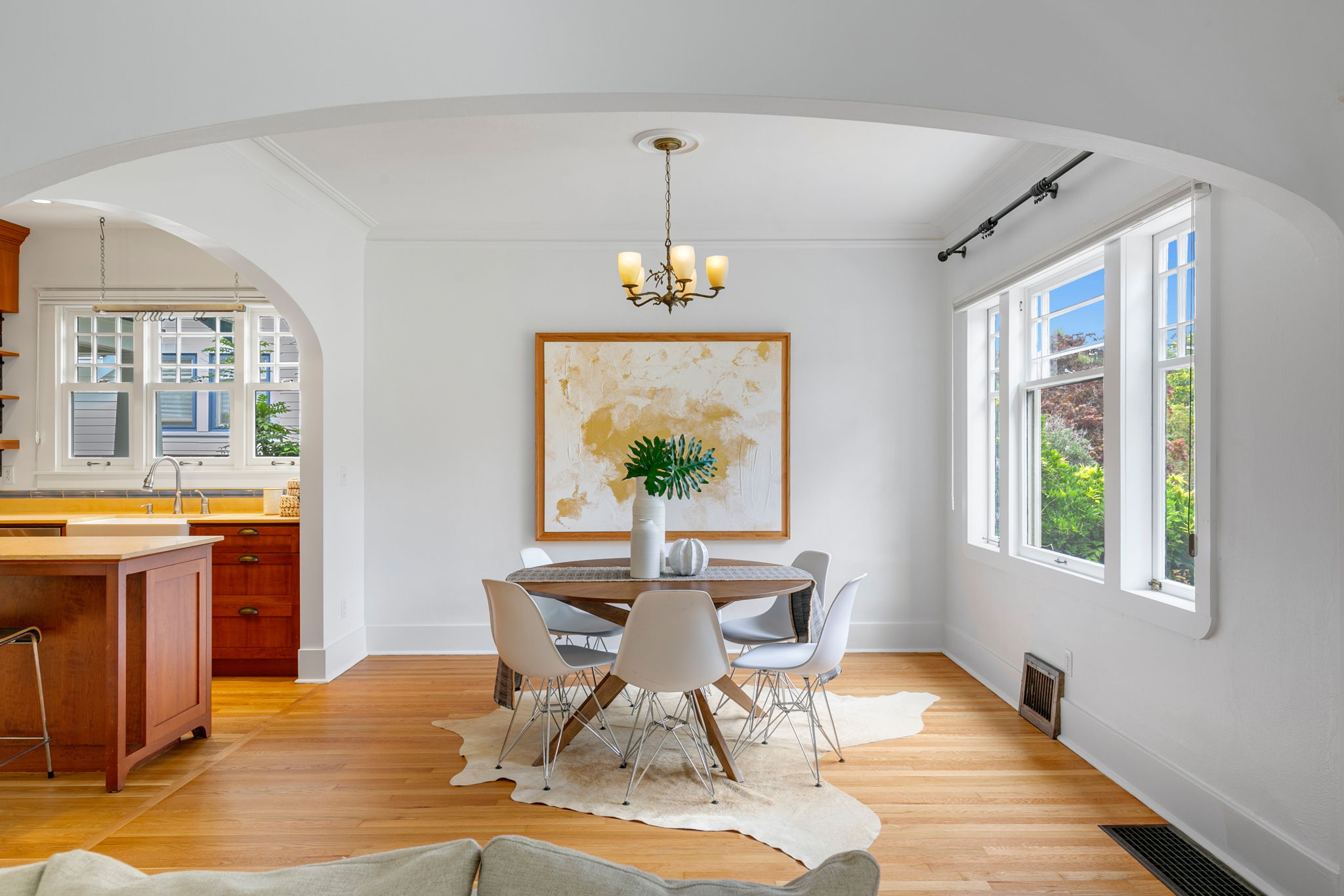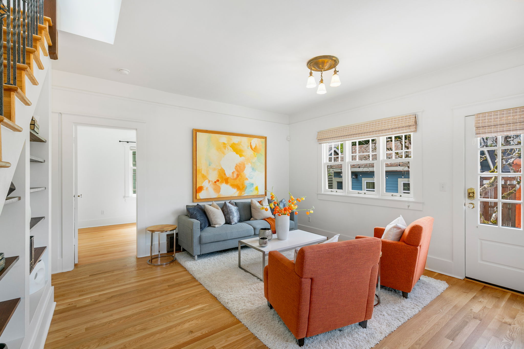 This timeless 1924 Craftsman is located on a quiet tree-lined street perched in Mt. Baker neighborhood. The thoughtful kitchen flows effortlessly into the dining and living areas. The spacious family room leads to a serene backyard retreat, complete with a hot tub and lush greenery. A convenient main floor bedroom, 3 bedrooms upstairs and 1 below. Skylights let in beautiful light. The versatile finished basement with ¾ bath, ideal as a guest suite or media/rec room. Detached studio offers privacy as a perfect office, creative sanctuary or home gym. Newly refinished Hardwood floors and fresh carpet. Heat pump/AC for year-round comfort, new roof with efficient solar panels. Walk to nearby restaurants, Light Rail, Lake Washington, beach, miles of trails and parks. Minutes to downtown and Eastside. $140K in updates.