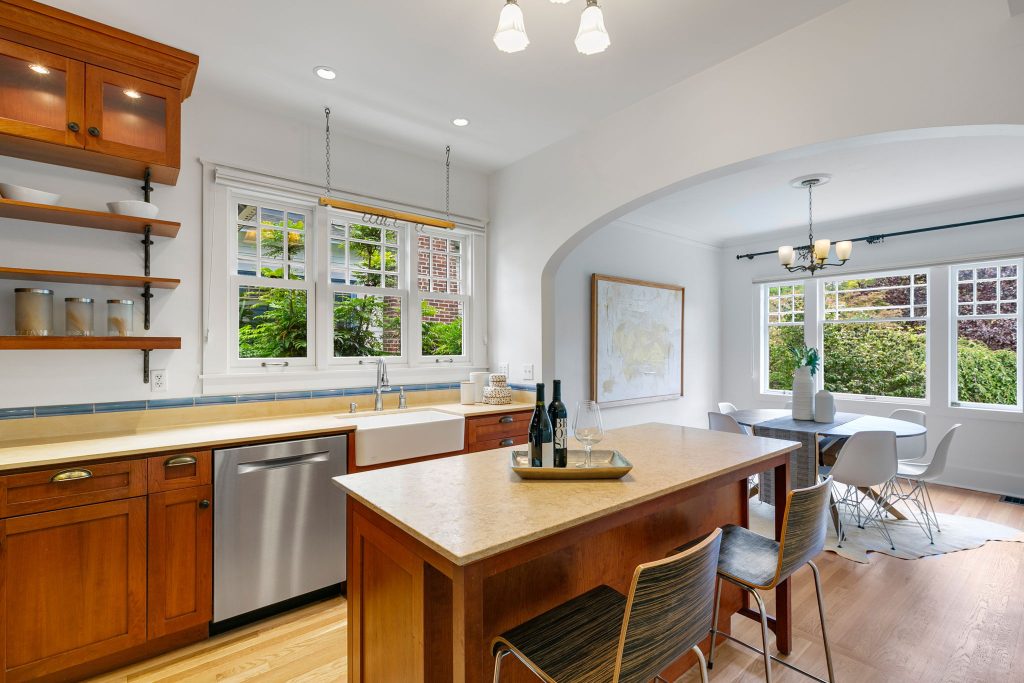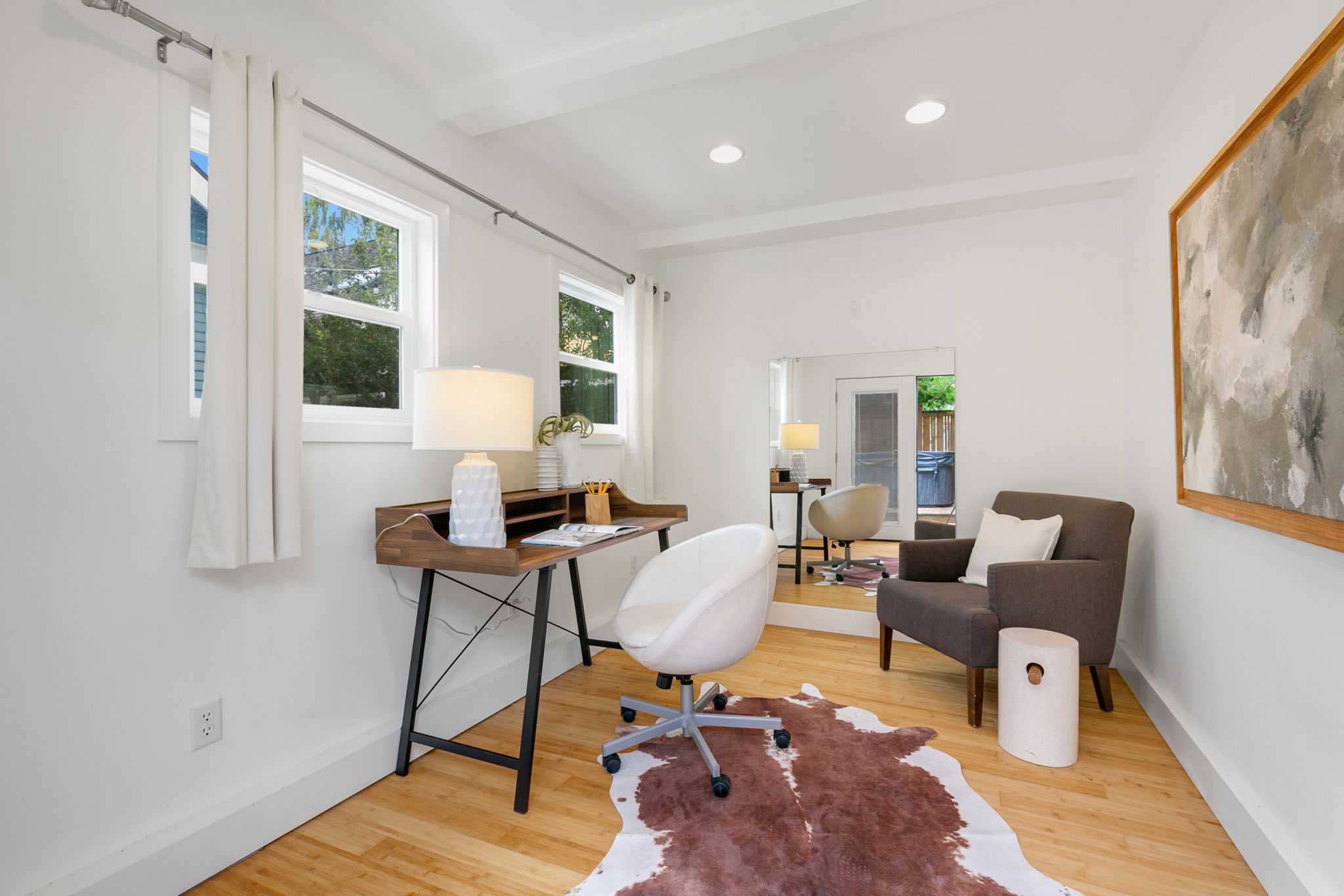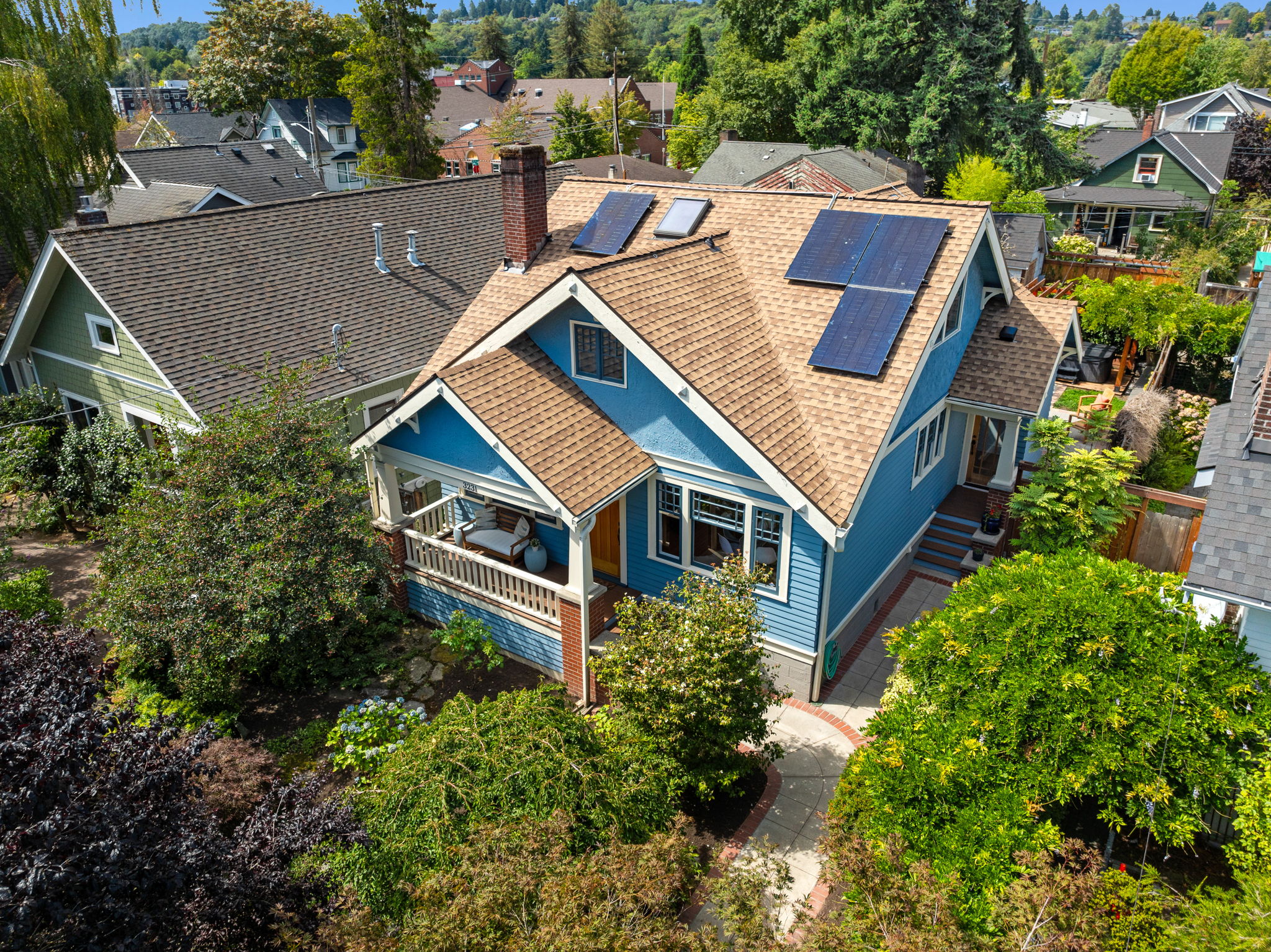 This timeless 1924 Craftsman is located on a quiet tree-lined street perched in Mt. Baker neighborhood. The thoughtful kitchen flows effortlessly into the dining and living areas. The spacious family room leads to a serene backyard retreat, complete with a hot tub and lush greenery. A convenient main floor bedroom, 3 bedrooms upstairs and 1 below. Skylights let in beautiful light. The versatile finished basement with ¾ bath, ideal as a guest suite or media/rec room. Detached studio offers privacy as a perfect office, creative sanctuary or home gym. Newly refinished Hardwood floors and fresh carpet. Heat pump/AC for year-round comfort, new roof with efficient solar panels. Walk to nearby restaurants, Light Rail, Lake Washington, beach, miles of trails and parks. Minutes to downtown and Eastside. $140K in updates.